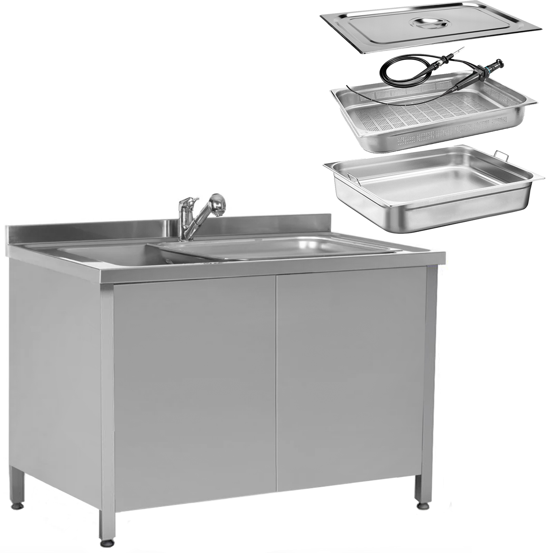 Мойка для эндоскопов (1 секция 960х510х380 мм), смеситель, 1200х700х850 мм, арт. 25332