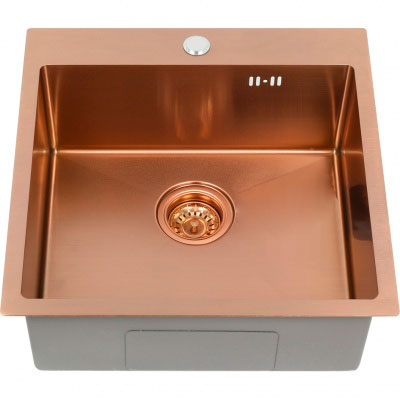 Мойка врезная нержавейка 500х500x200 мм С/О МАТОВАЯ БРОНЗА с сифоном.
