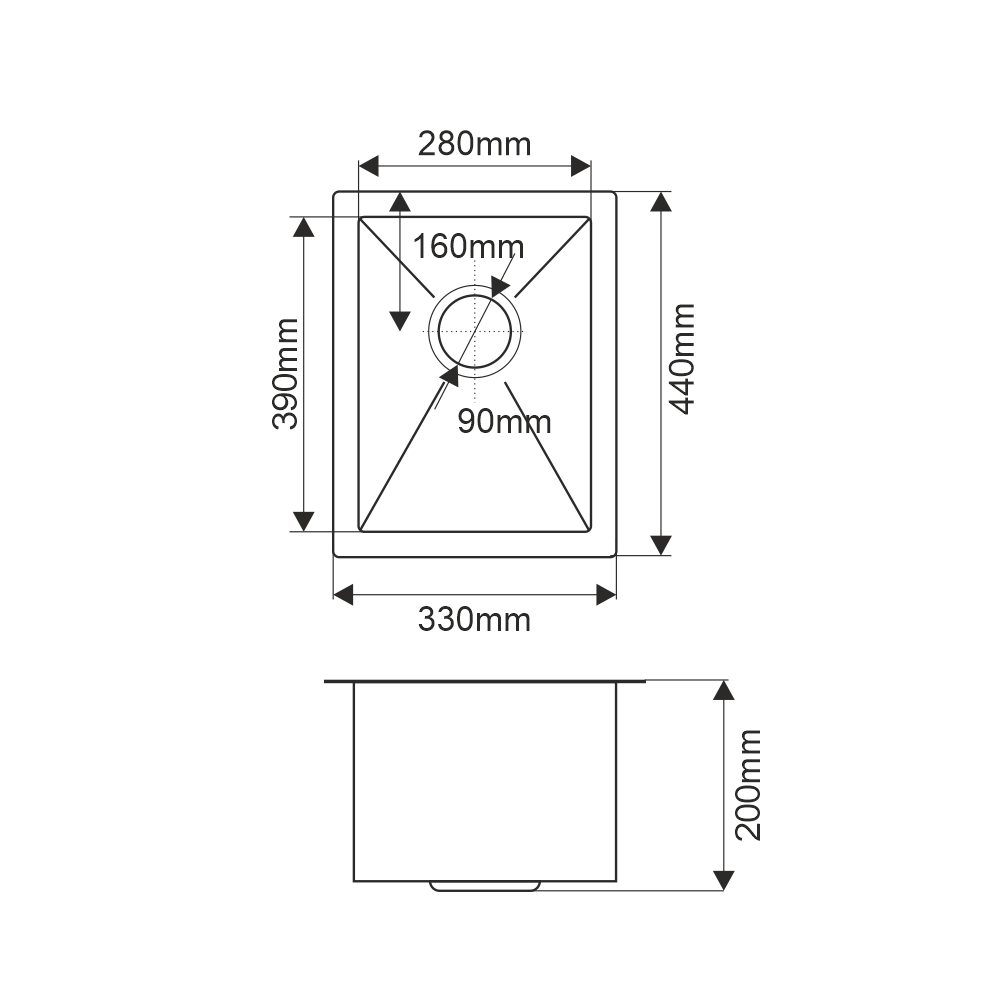 Мойка врезная нержавейка 330х400x200 мм Б/О МАТОВАЯ с сифоном
