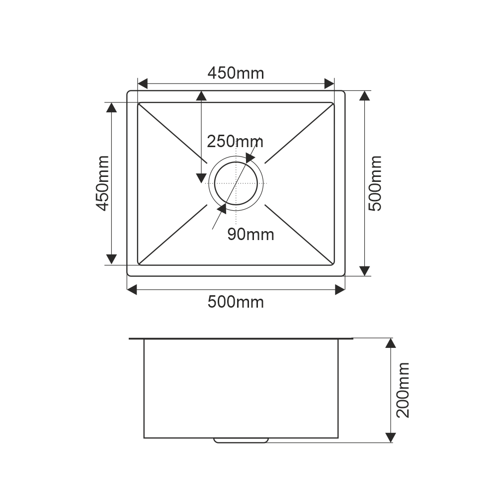 Мойка врезная нержавейка 500х500x200 мм Б/О МАТОВАЯ с сифоном.