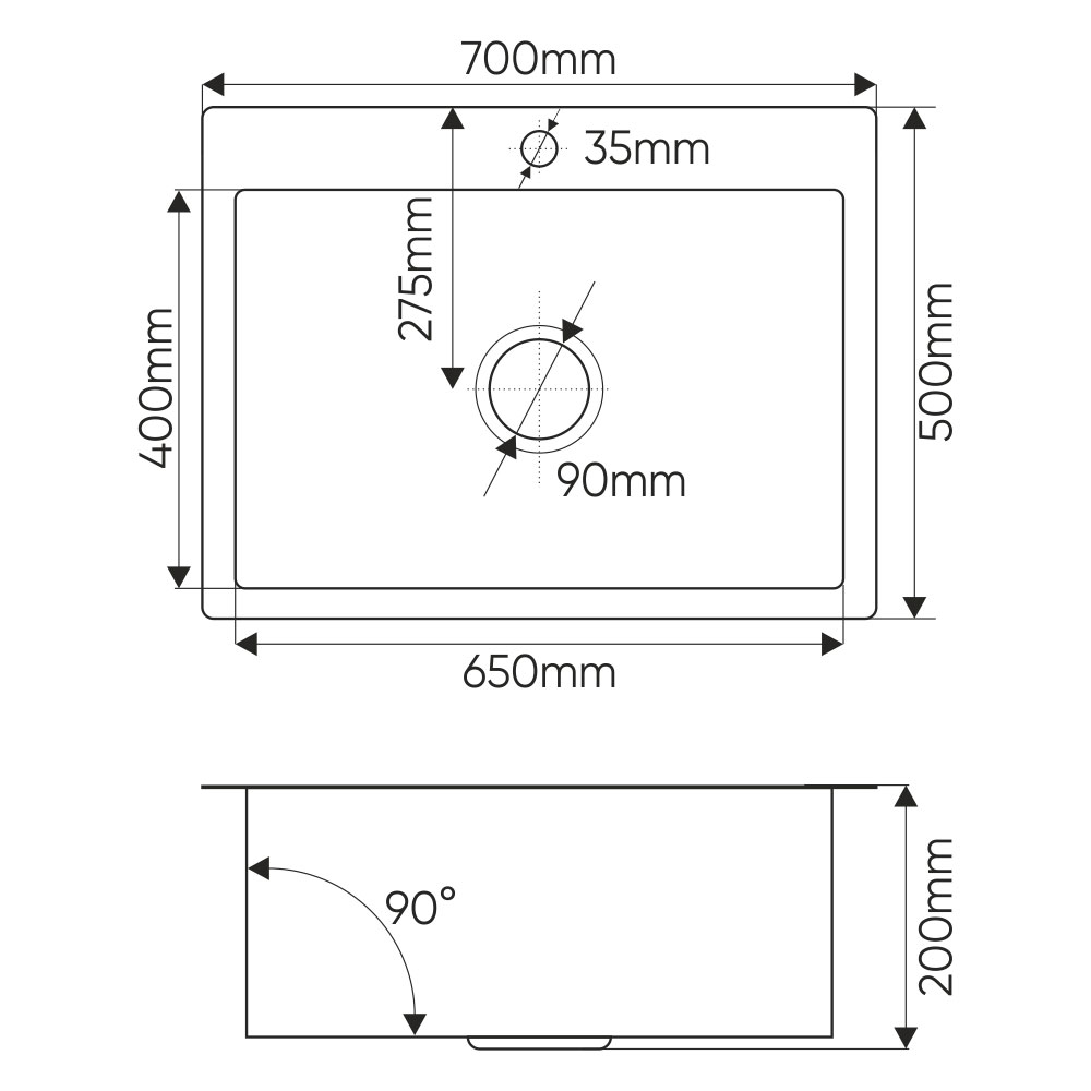 Мойка врезная нержавейка 700х500x200 мм С/О МАТОВАЯ с сифоном.