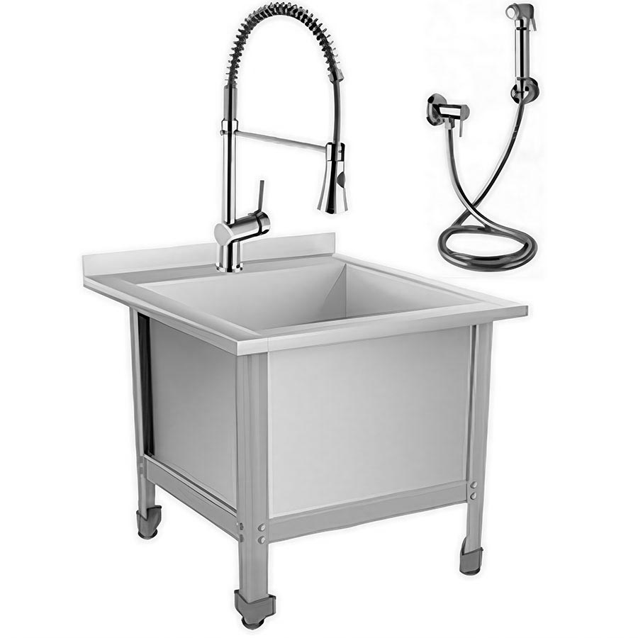 Видуар технический слив (поддон) нержавеющая сталь AISI 430 530х600х600, каркас оцинкованная сталь, со смесителем,технической лейкой и краном(эконом).