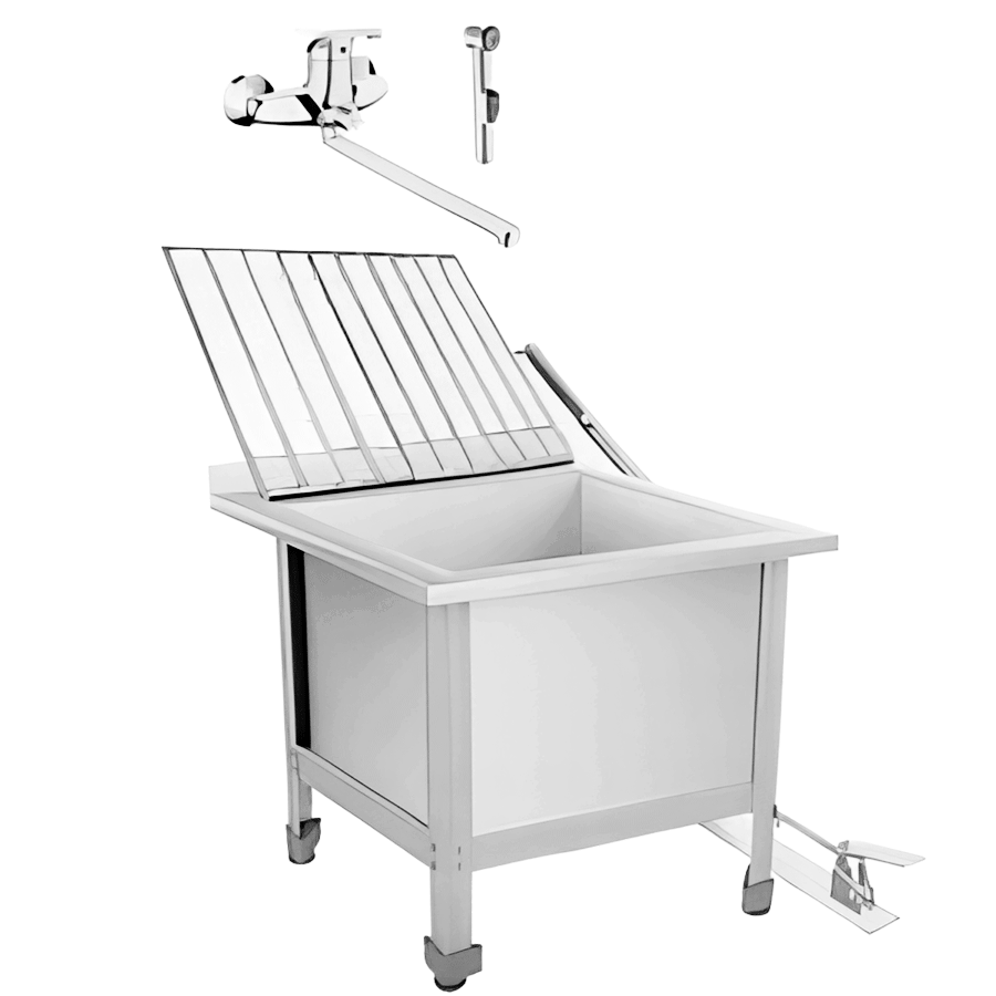 Видуар технический слив (поддон) нержавеющая сталь 400х500х500, каркас оцинкованная сталь, с решеткой, педалью и смесителем излив 20 см, с технической лейкой.