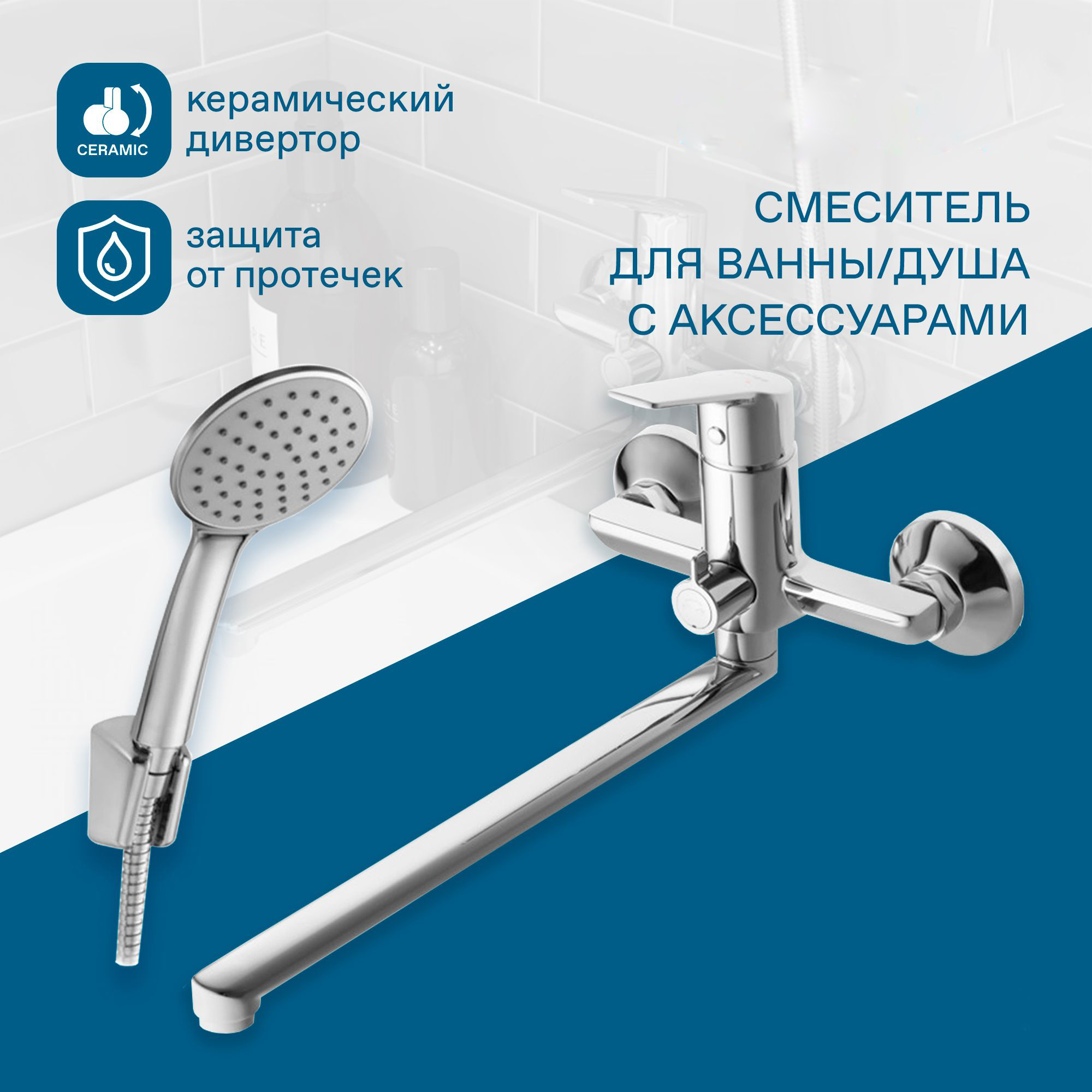 Оснащение: аэратор, держатель для душевой, лейки, дивертор, душевая лейка, душевой шланг, смеситель, эксцентрики