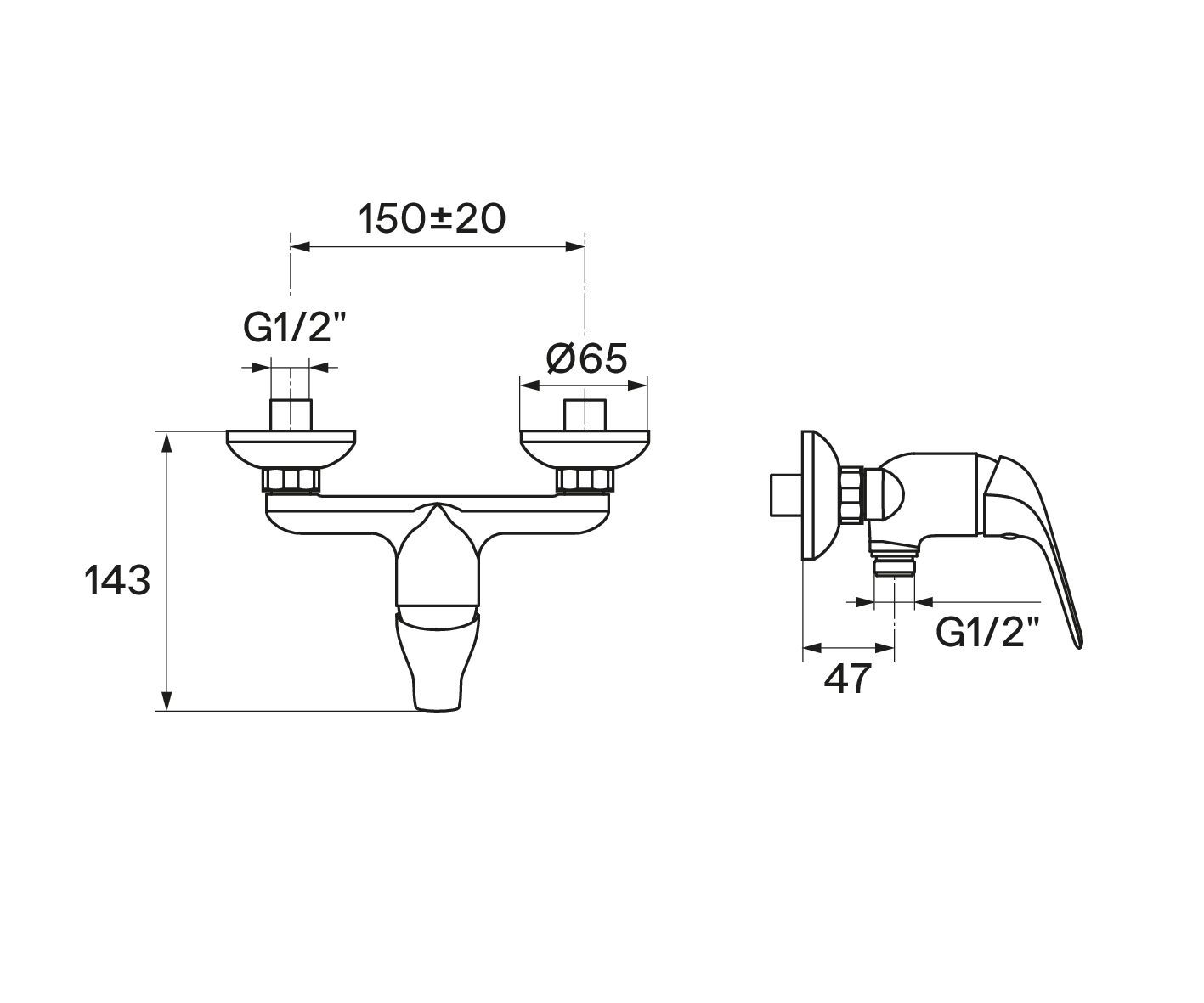 Оснащение: душевая лейка, душевой шланг, держатель для душевой лейки, смеситель, эксцентрики