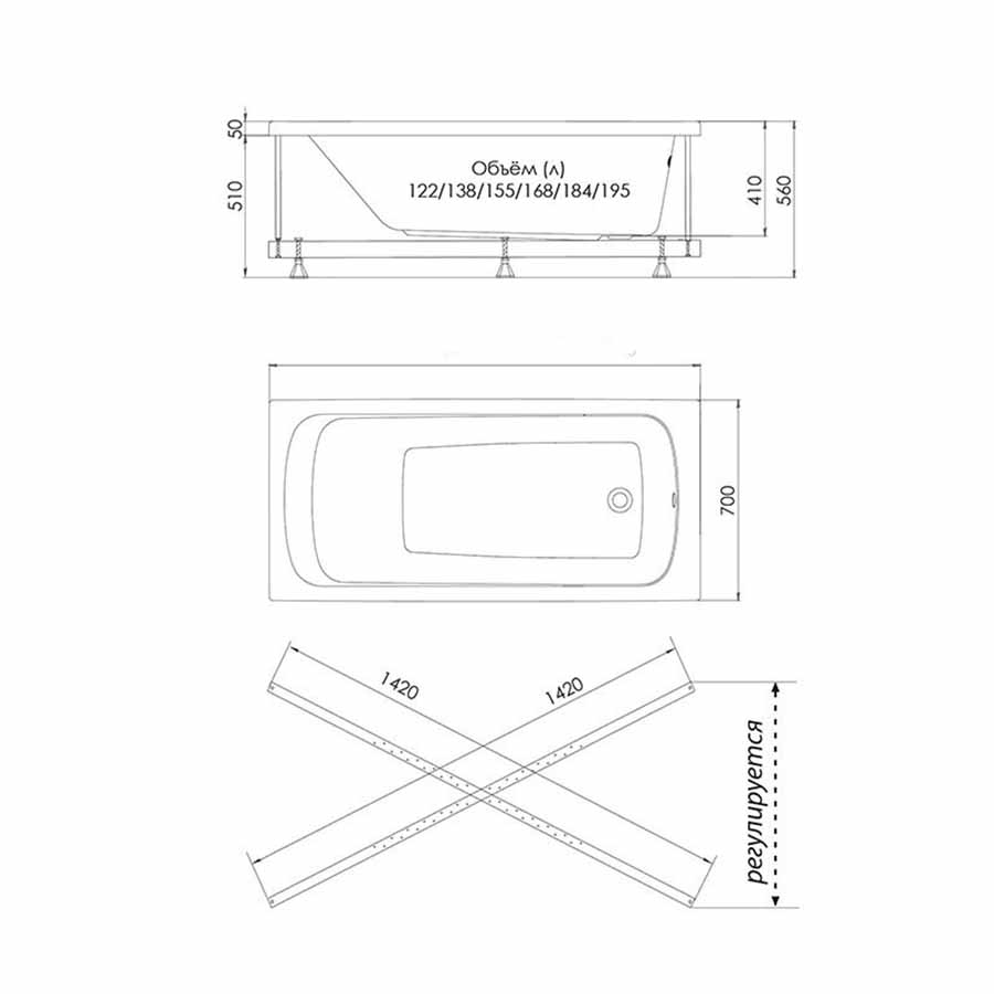 Дополнительно может комплектовать: экран к ванне, ножки.