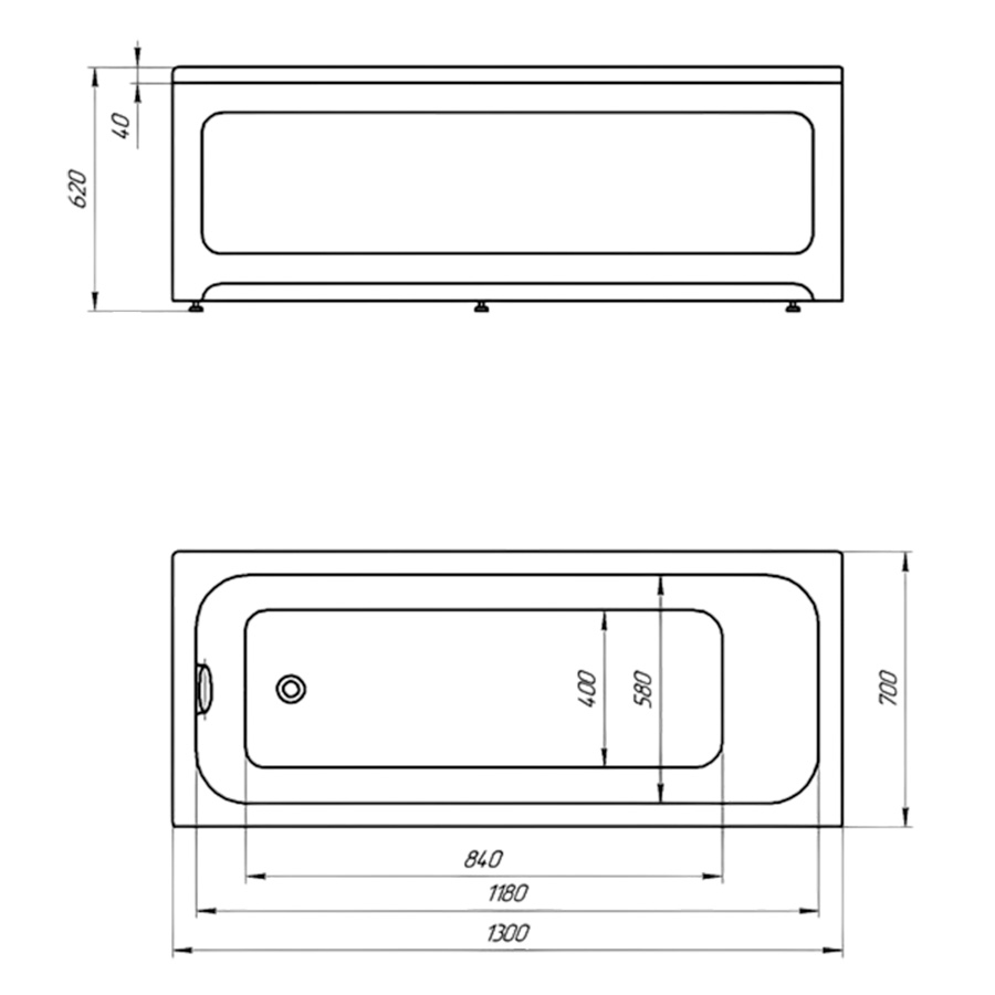 Ванна акриловая прямоугольная в полной комплектации 1300х700х620 мм, 27183