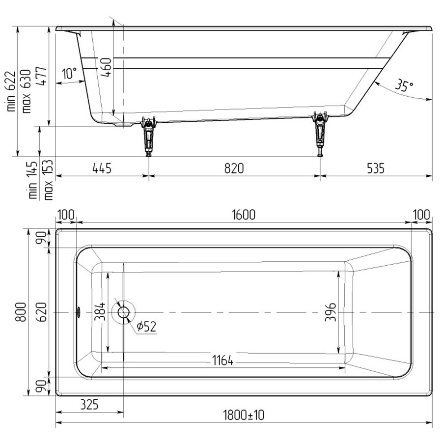 Длина ванны