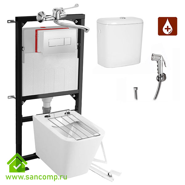 Видуар ПОДВЕСНОЙ КВАДРО САНКОМП,с инсталляцией,бачком для раствора КЕРАМИКА,РЕШЕТКА ИЗ НЕРЖАВЕЮЩЕЙ СТАЛИ AISI 304,ПЕДАЛЬ,СМЕСИТЕЛЬ С ТЕХНИЧЕСКОЙ ЛЕЙКОЙ.