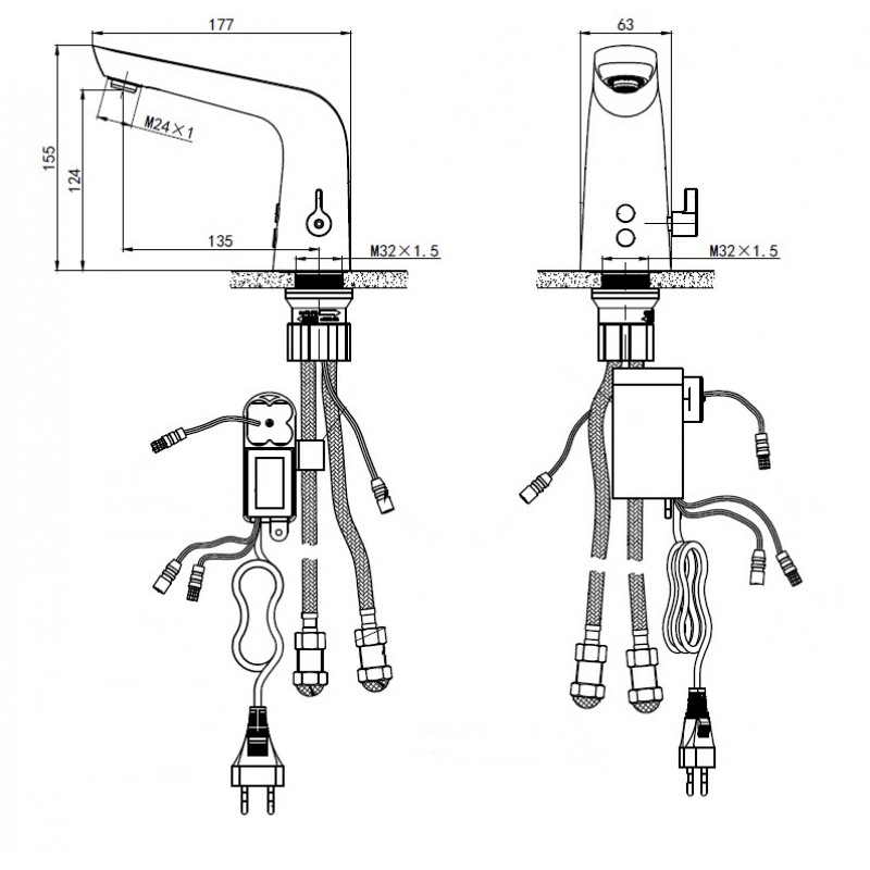 Смеситель сенсорный для раковины, смешивание на корпусе, питание от батареек или сети 220В, 18994